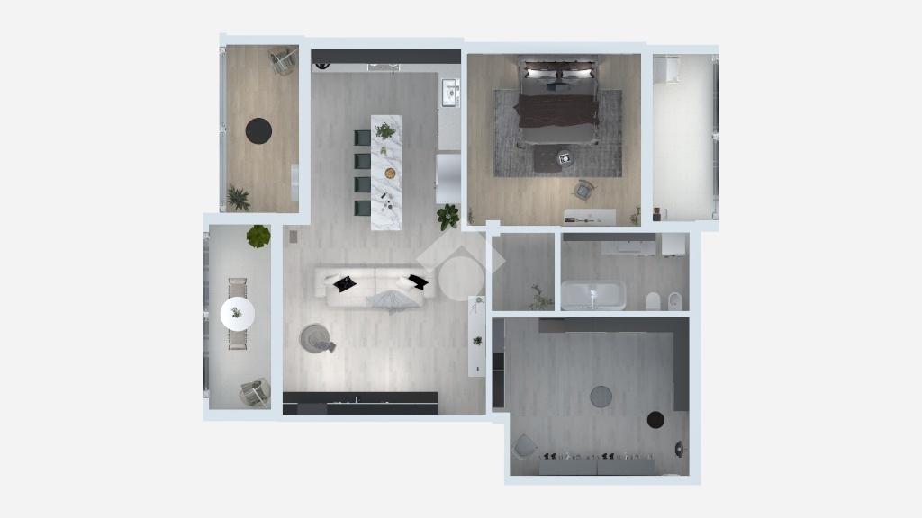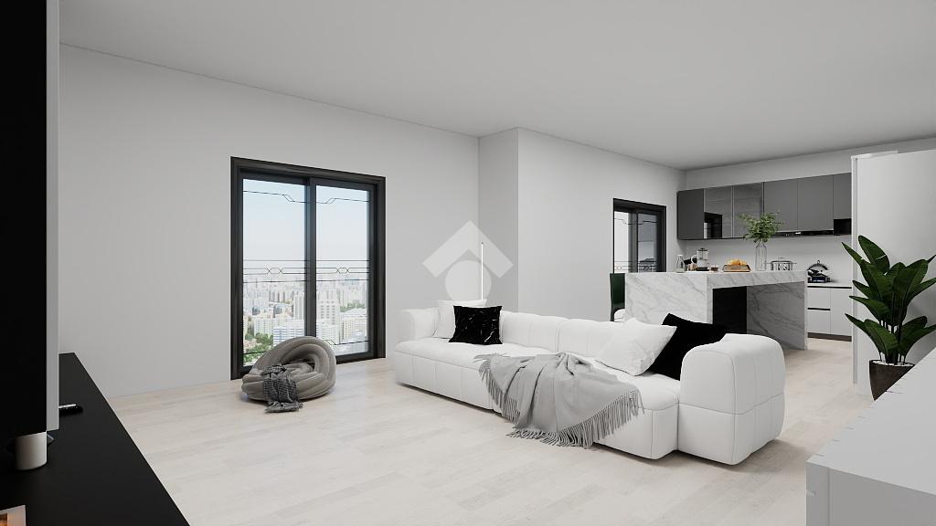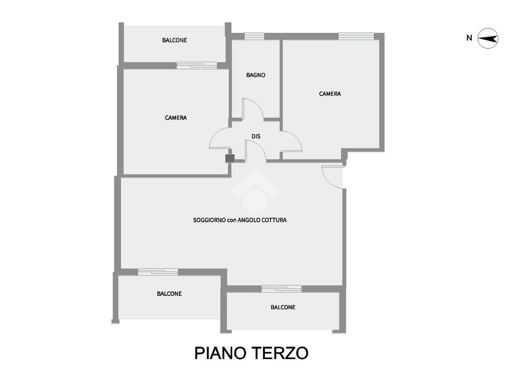 L’abitazione, situata al terzo ed ultimo piano, si compone di un confortevole e spazioso soggiorno con splendida cucina a vista, servito da due comodi balconi, un disimpegno, due camere da letto, di cui una provvista di balcone, ed un bagno con doccia.