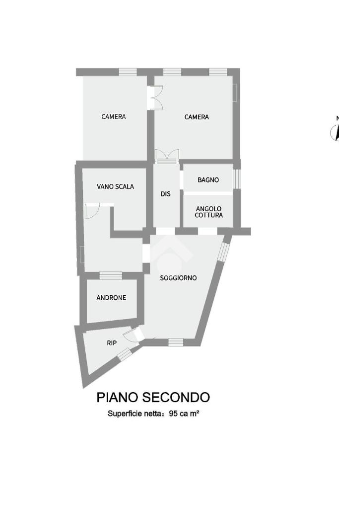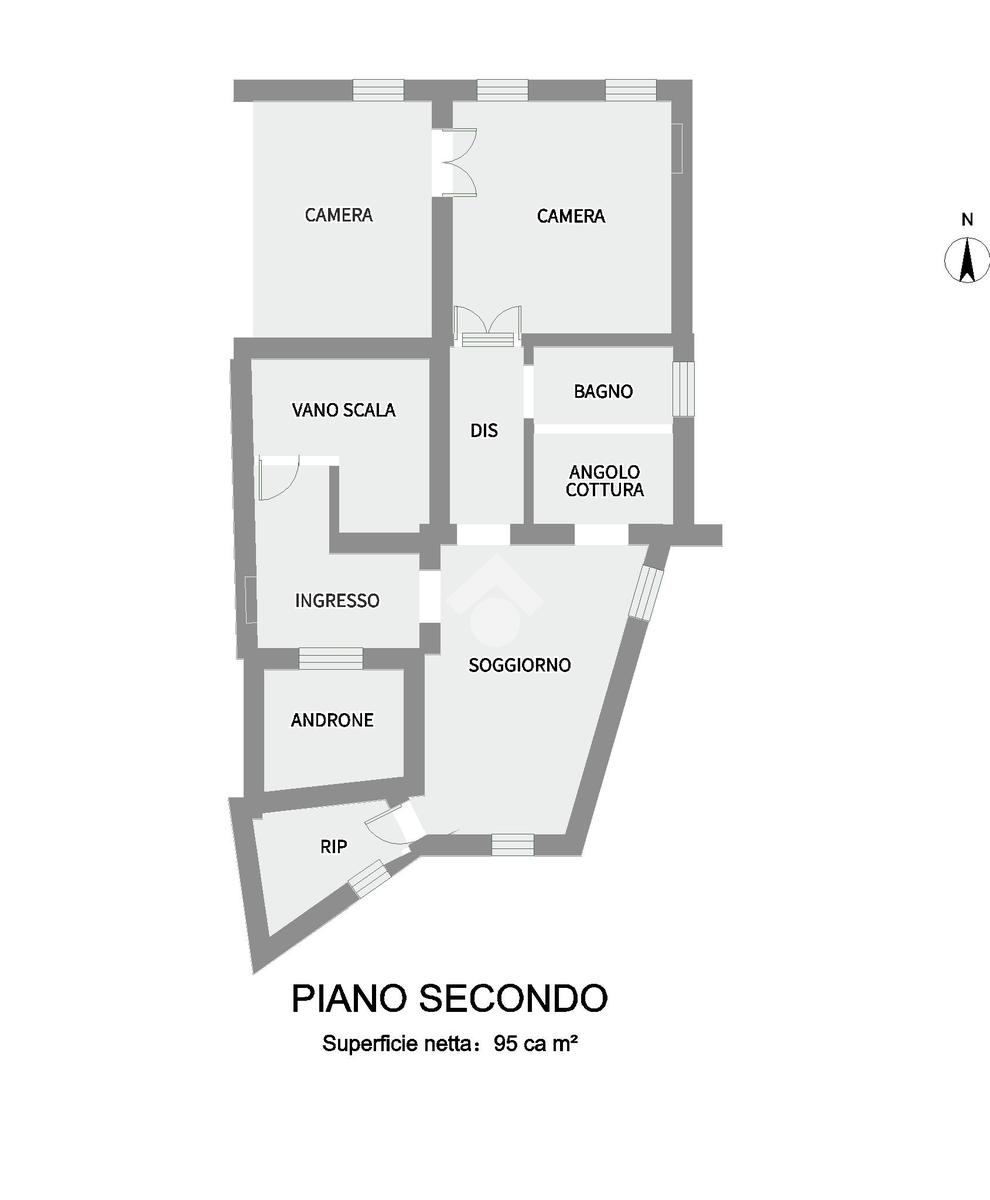 All'interno di un antico edificio storico, luminoso appartamento sito al secondo ed ultimo piano, con una metratura di 95 mq circa.