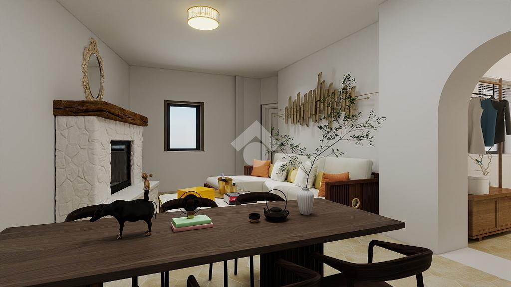 L'abitazione, caratterizzata da alti soffitti, si compone di un ingresso che conduce ad un luminoso soggiorno con camino e retro cucina, un ripostiglio, un disimpegno, due spaziose camere da letto ed un bagno con box doccia. L'appartamento gode di un'ottima luminosità e di una vista panoramica unica, che spazia dal centro storico del paese alla suggestiva vallata del Vomano, fino al maestoso 'Gran Sasso'.