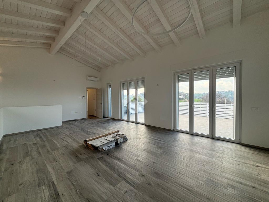 In contrada Colle di Giorgio, spazioso appartamento posto al primo piano di una casa bifamiliare di nuova realizzazione dalle elevate prestazioni energetiche e con moderne finiture.