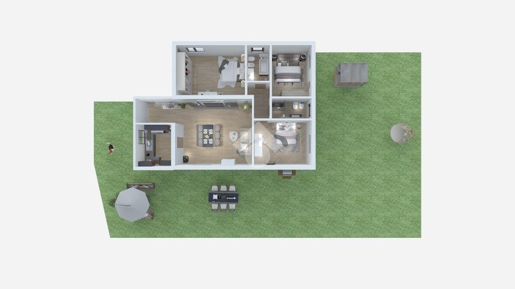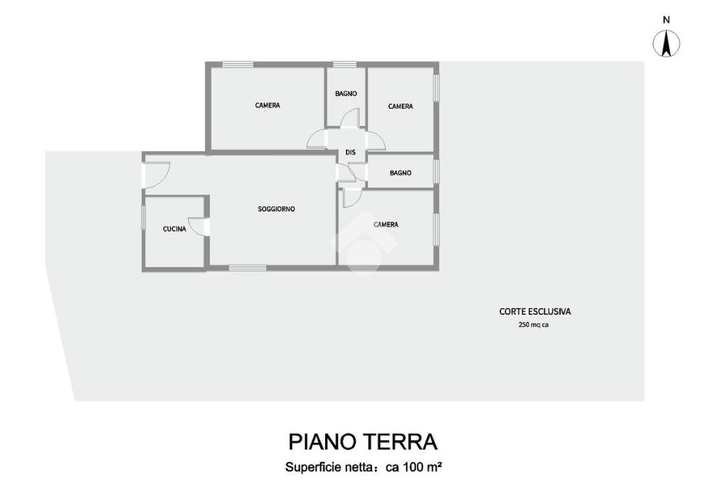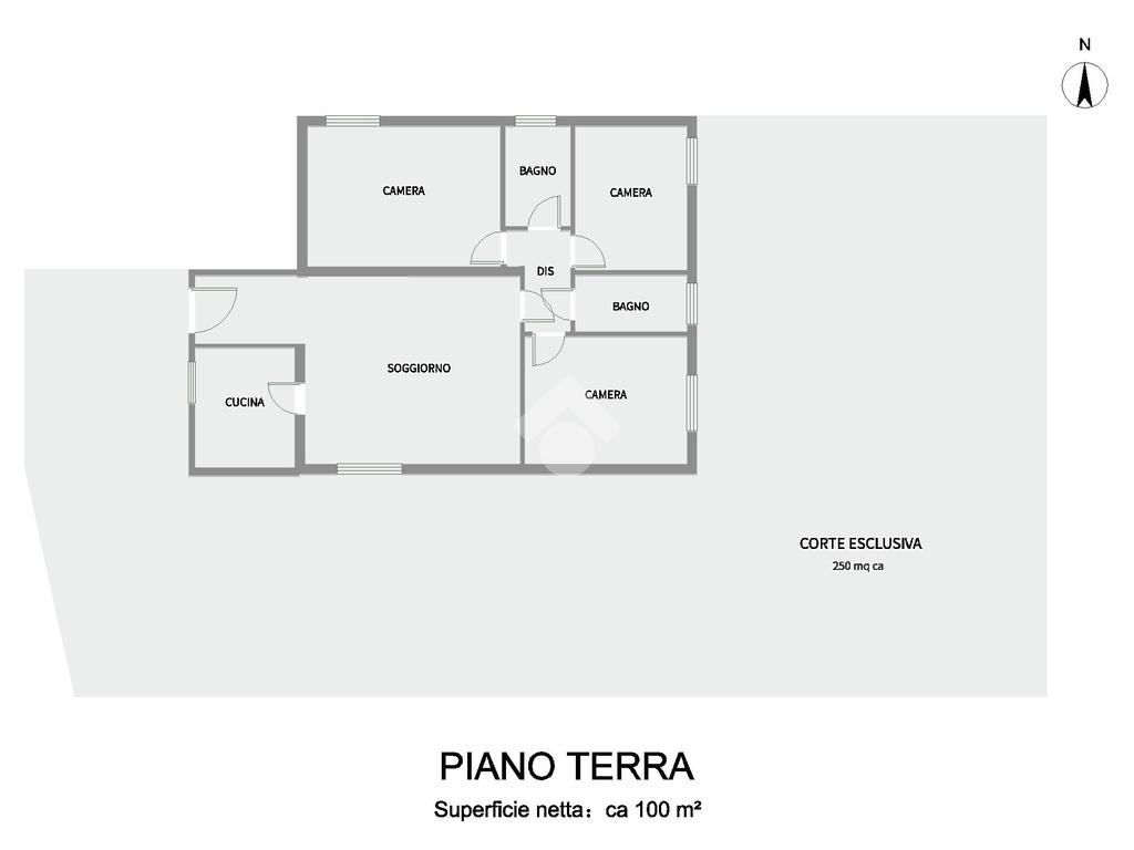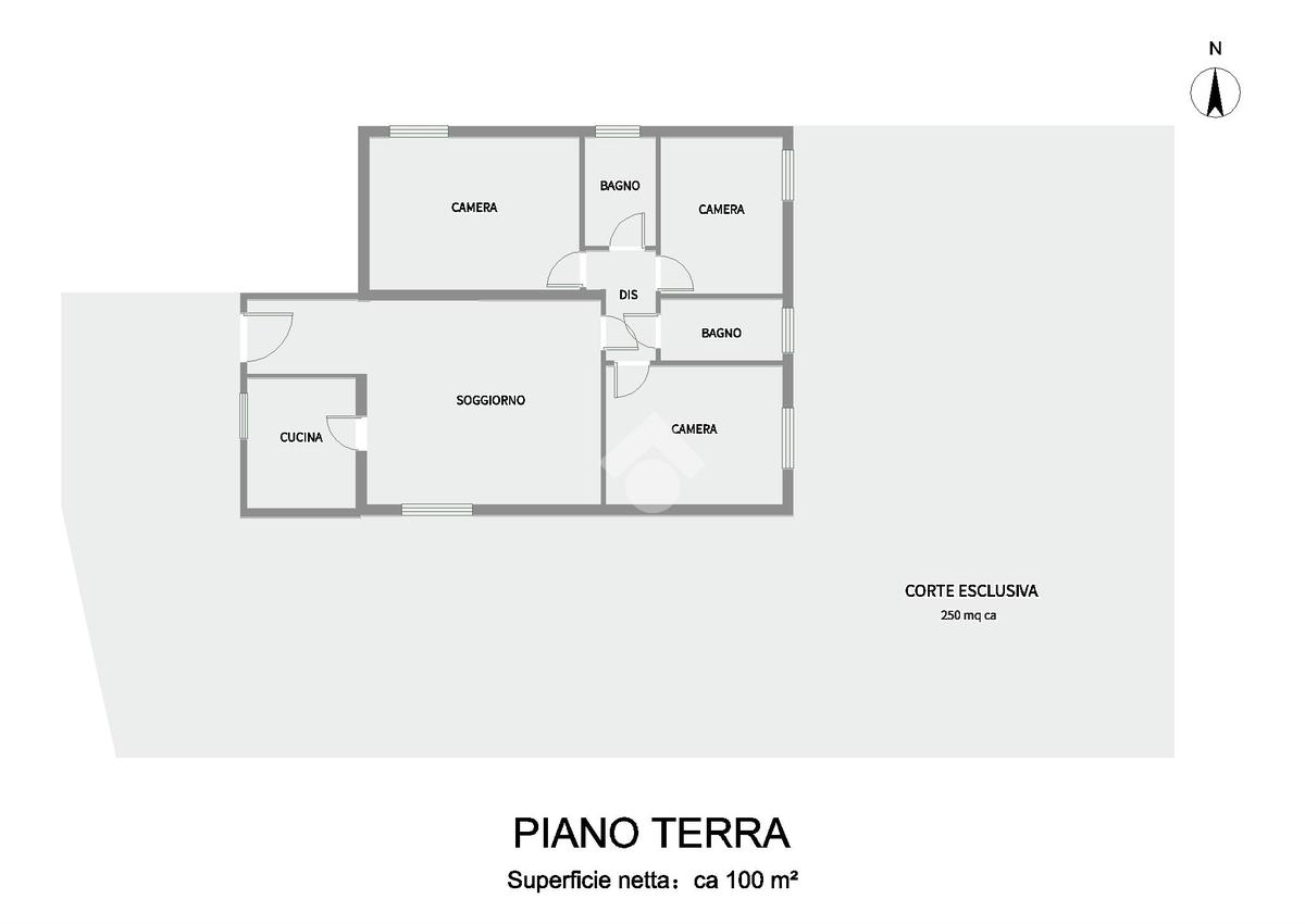 L'immobile è circondato da una corte esterna privata e recintata di 250 mq circa, ideale per il parcheggio e per essere sfruttata come spazio all'aperto.