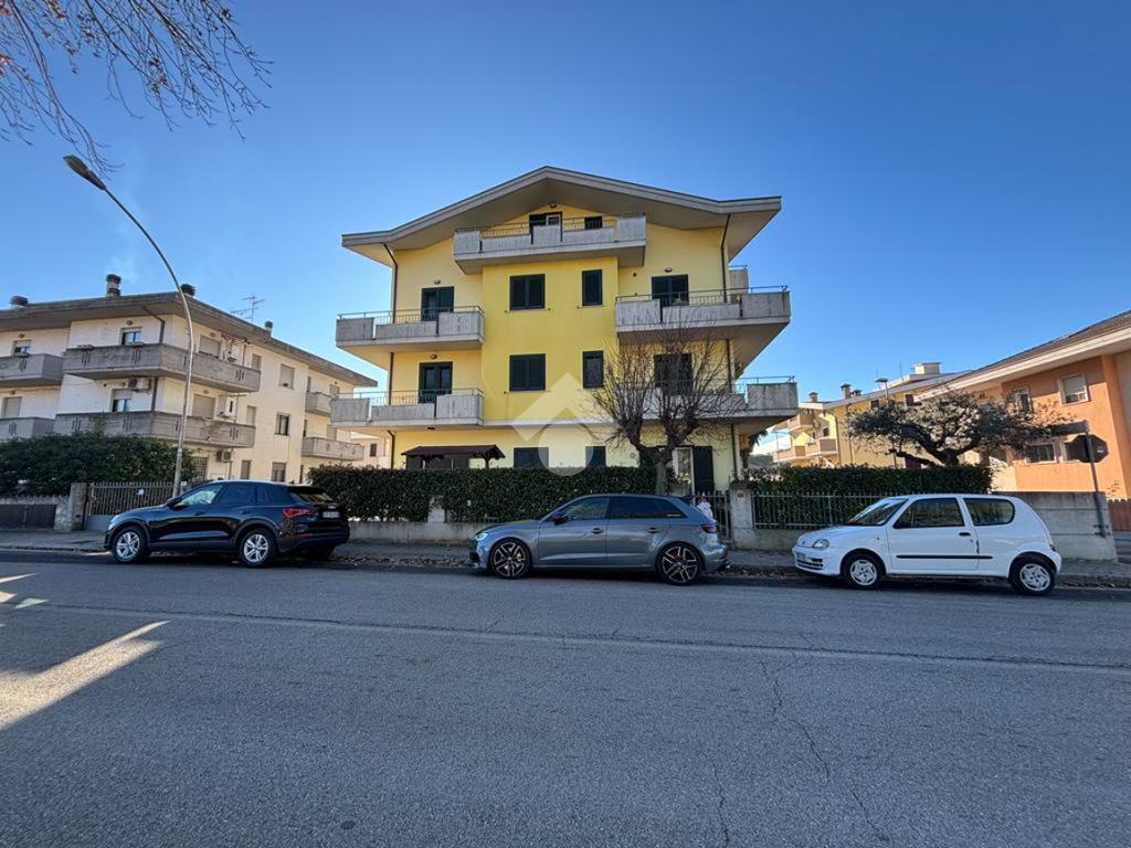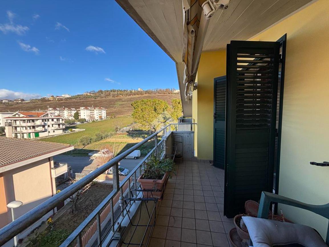 L’abitazione si compone di un ampio soggiorno, un cucinotto, disimpegno, due camere da letto, un bagno con doccia ed un wc con doccia. Gli ambienti sono valorizzati dalla presenza di tre balconi, che garantiscono un'ottima luminosità e vista sul 'Gran Sasso', oltre ad un ripostiglio.