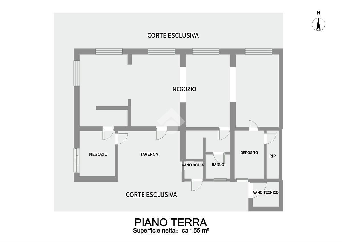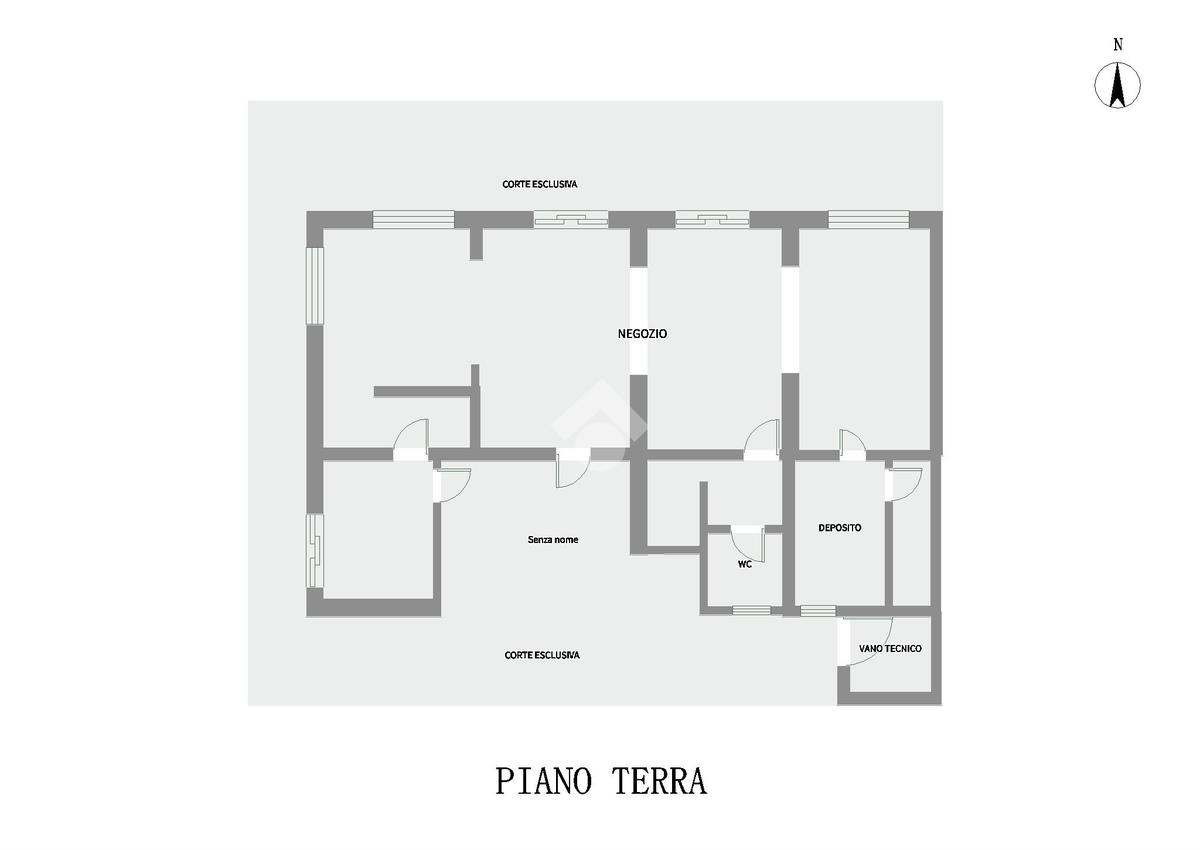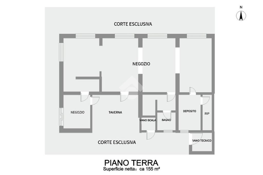Posizionato al piano terra, il negozio, categoria C/1, occupa una superficie di circa 135 mq e le sei vetrine fronte strada assicurano una visibilità eccellente. Il locale è dotato di due ripostigli e di un bagno con doccia. In aggiunta al piano terra, si trova una taverna con retro cucina. Presente una corte esterna pavimentata ad uso esclusivo di circa 120 mq.