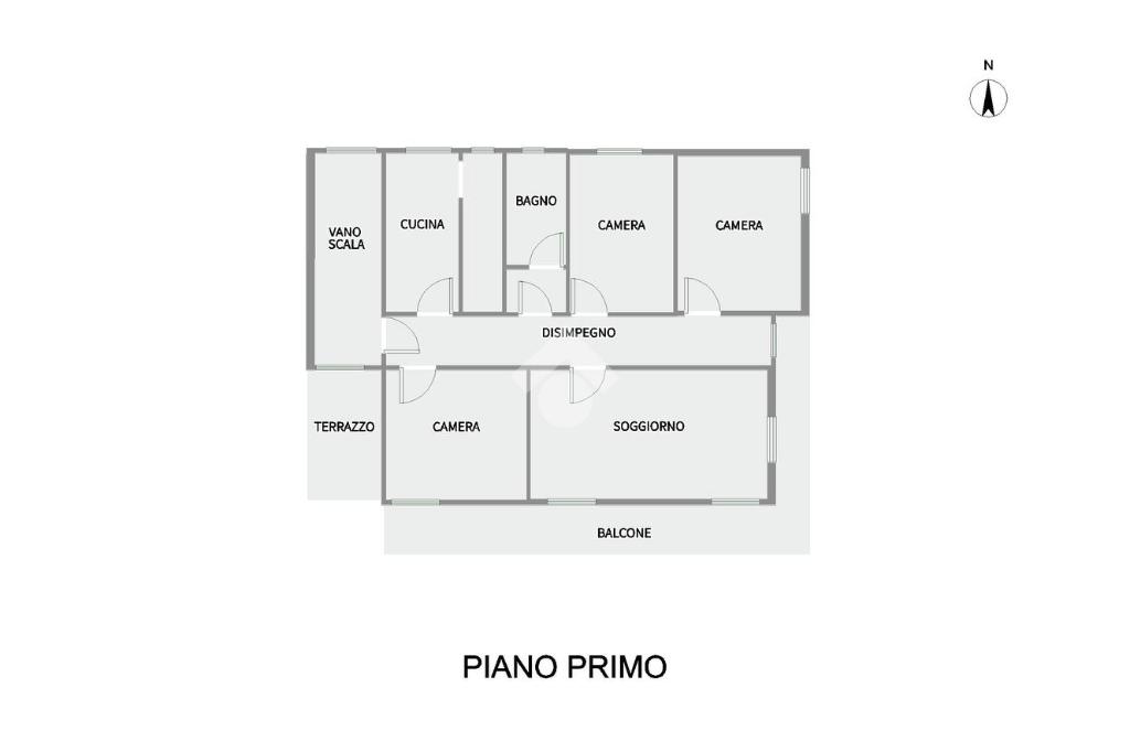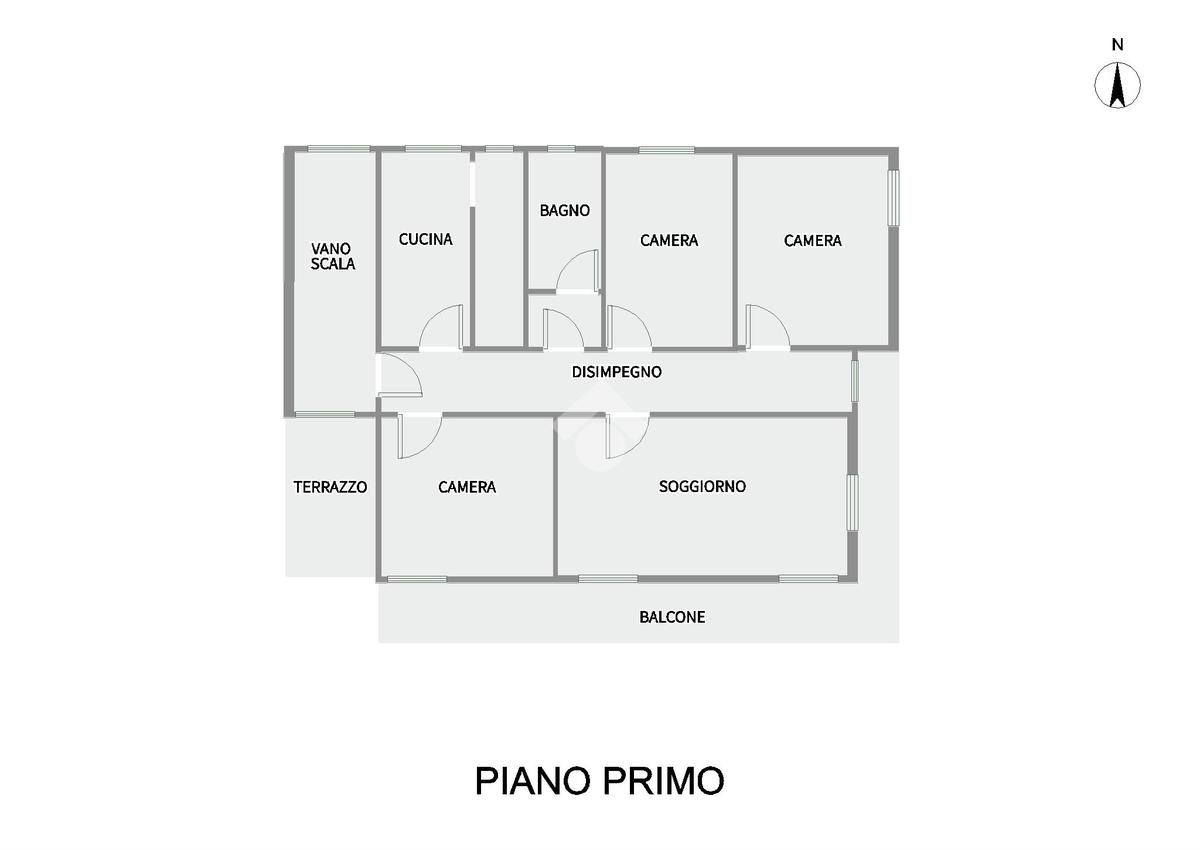 Il piano primo, dove è presente l'abitazione, risulta composto da un ampio ingresso - corridoio, una cucina con retro cucina, un soleggiato e spazioso soggiorno, tre camere da letto matrimoniali ed un bagno con antibagno e vasca. Un terrazzo ed un balcone vanno a completare il piano.