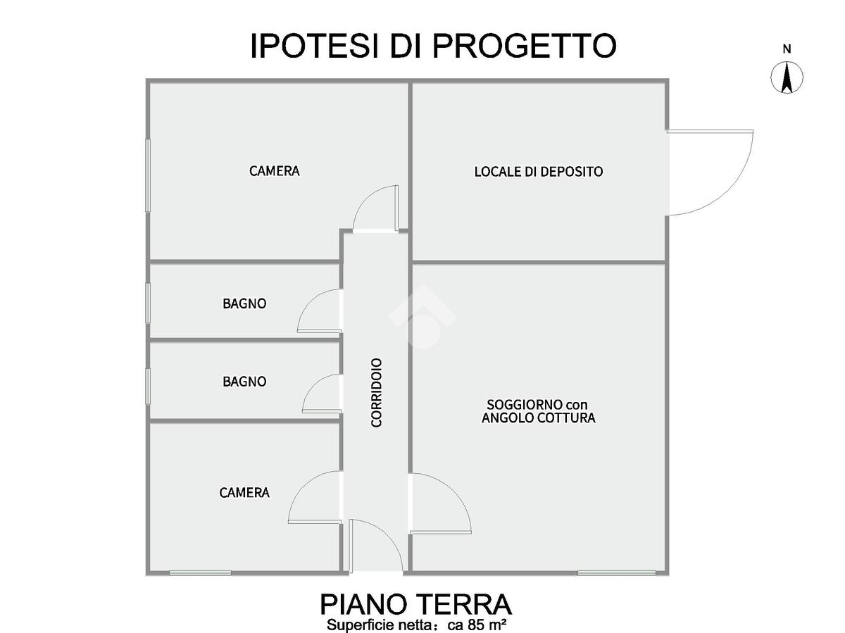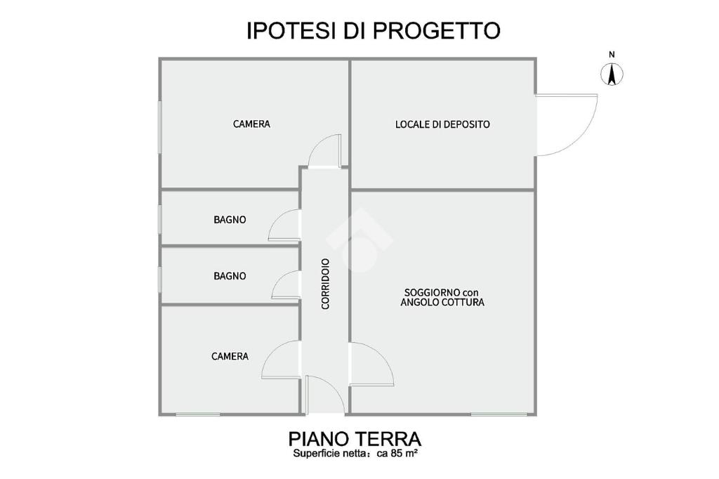 Soluzione ideale per chi desidera una proprietà autonoma, disposta su un unico livello al piano terra, con una superficie complessiva di circa 85 mq.