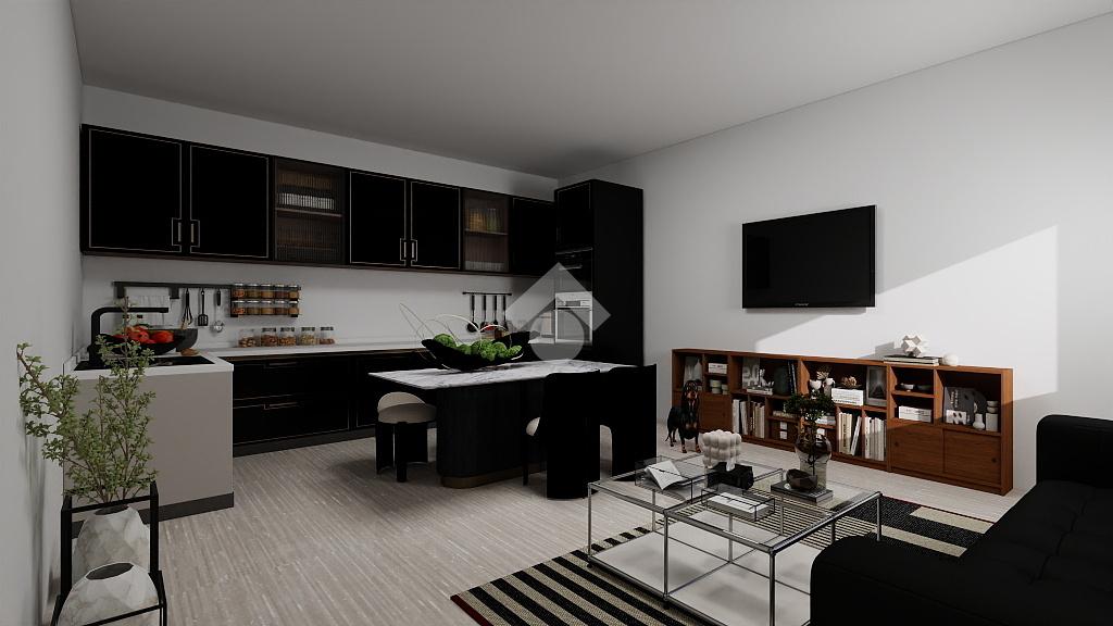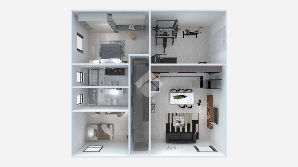 Al suo interno, l'immobile risulta composto da vari ambienti, consegnati con la destinazione futura di soggiorno con angolo cottura, un corridoio, due camere da letto, doppi servizi e locale di deposito.