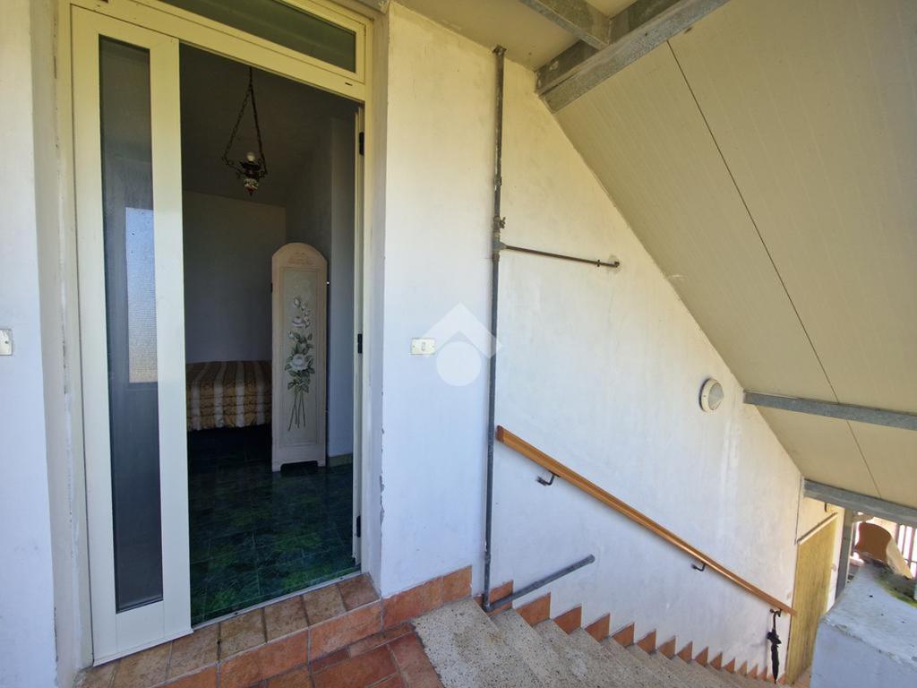 Al primo piano si sviluppa l'abitazione principale, che comprende un ingresso, un luminoso soggiorno con angolo cottura, un bagno cieco con doccia ed una generosa camera matrimoniale. A disposizione un accogliente terrazzo che regala una vista mozzafiato dal verde della vallata fino al blu del mare Adriatico.