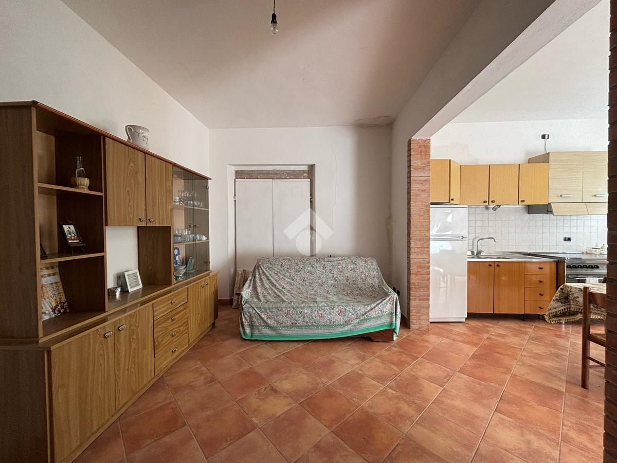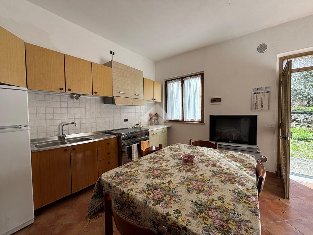 L’abitazione si sviluppa su due livelli ed al piano terra sono presenti una cucina con termo camino e due cantine.