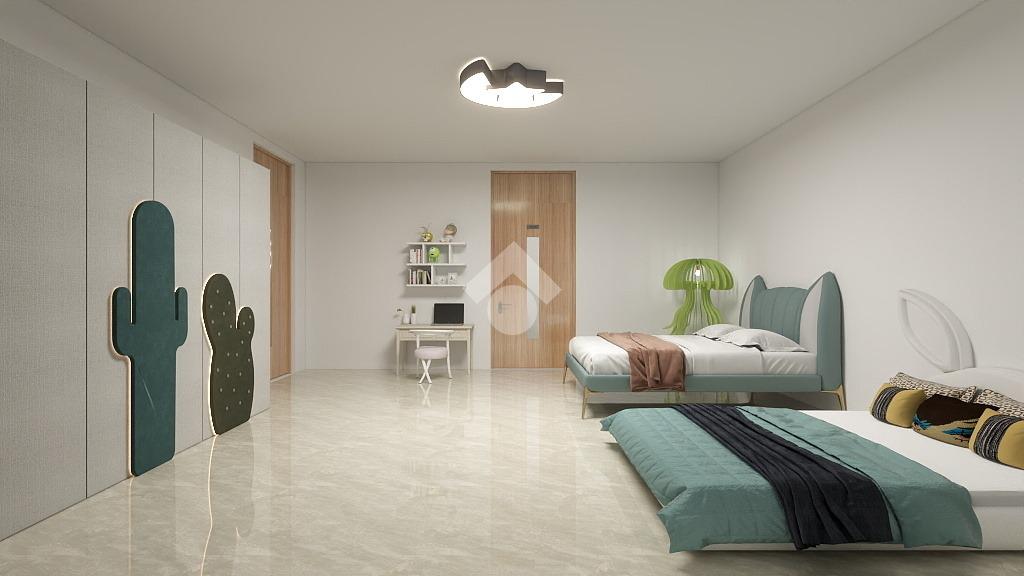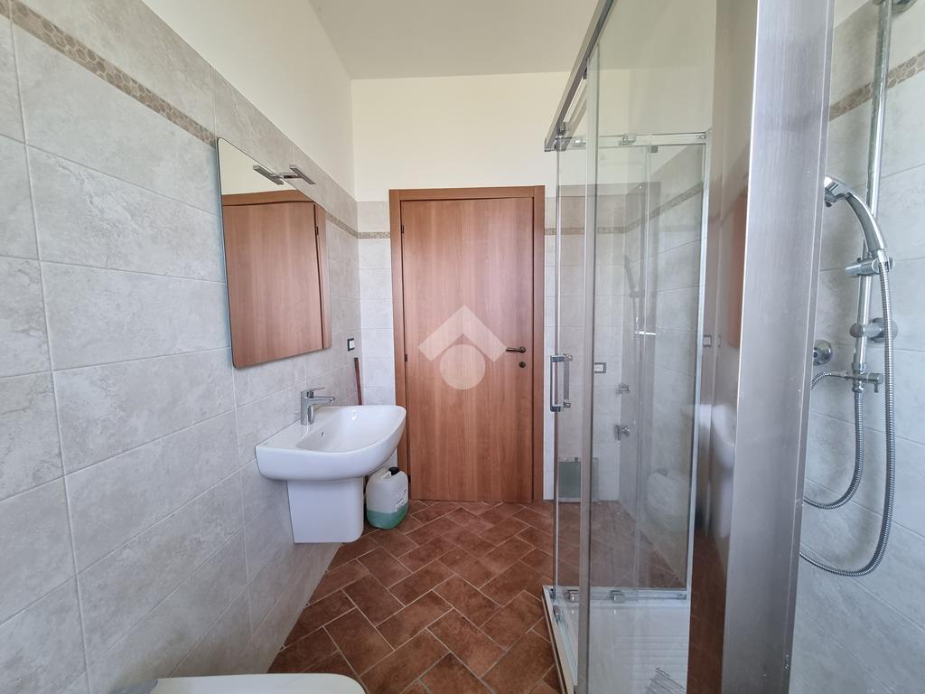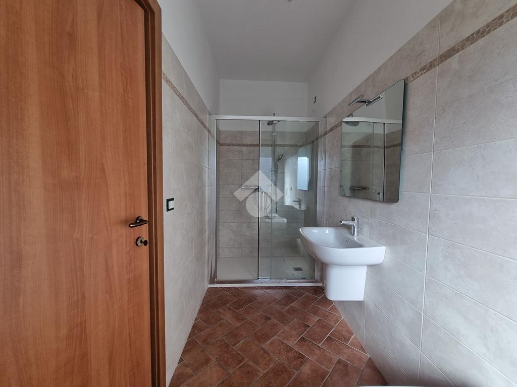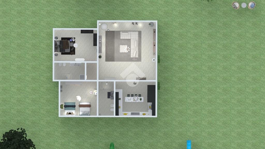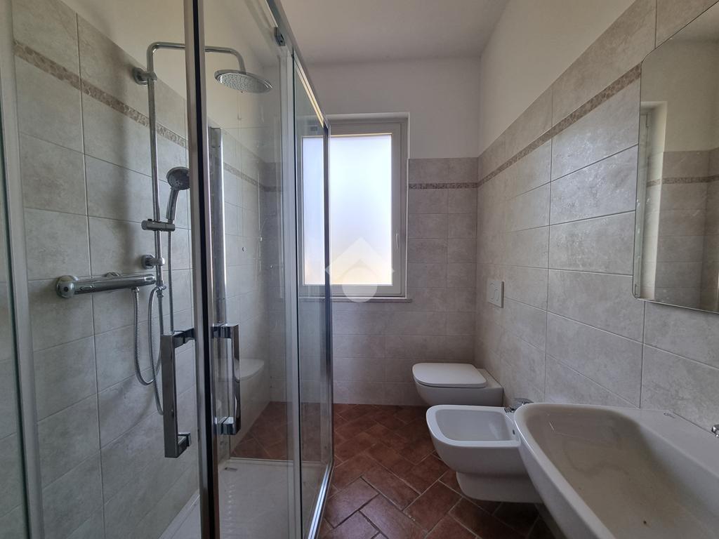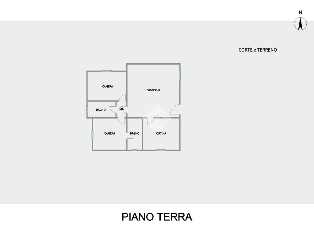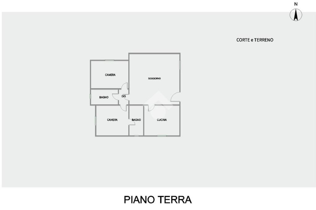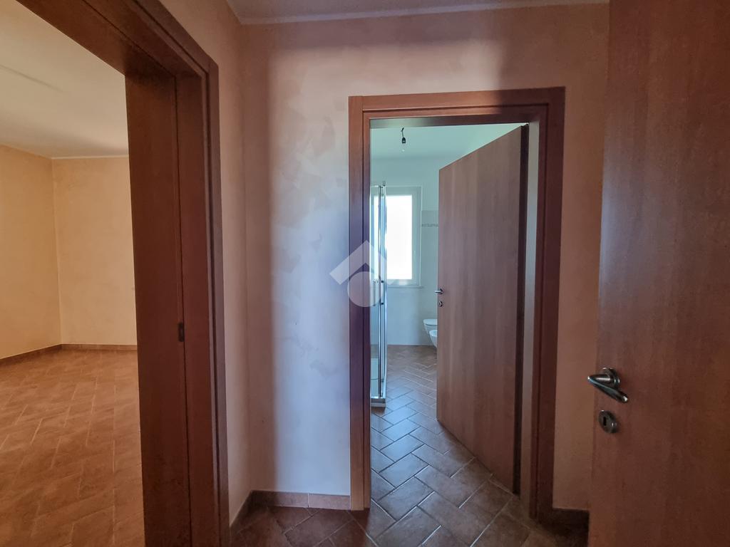 L’abitazione si sviluppa interamente su un unico livello, per una metratura interna di circa 90 mq, ed è composta da un luminoso soggiorno, una cucina abitabile, un disimpegno, due camere da letto, di cui una con bagno privato completo di doccia, oltre ad un secondo bagno, anch’esso dotato di box doccia.