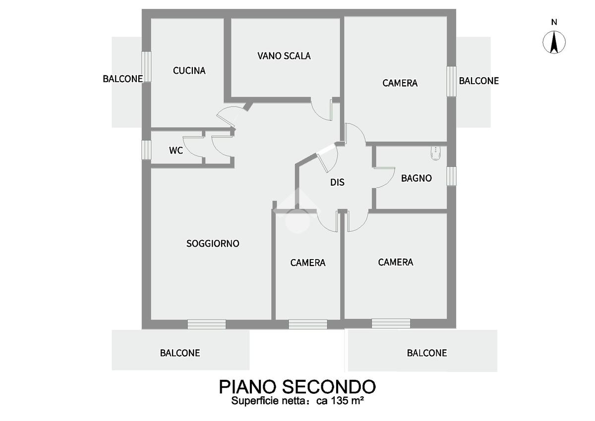 L'immobile dispone di ben quattro balconi, che offrono affacci su più lati, perfetti per godere di luce e aria durante tutto il giorno. Completano la proprietà un garage al piano terra ed un'area esterna ad uso comune.