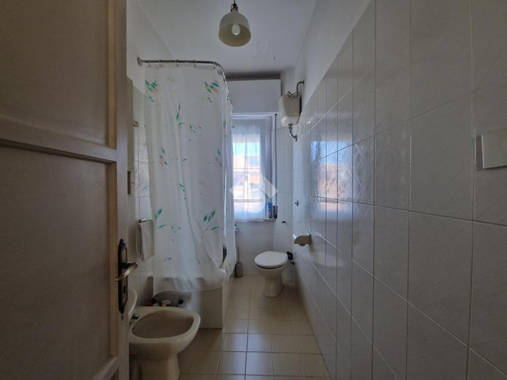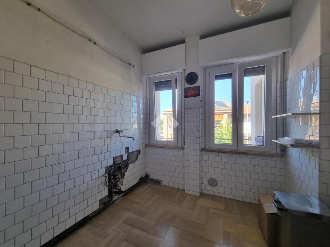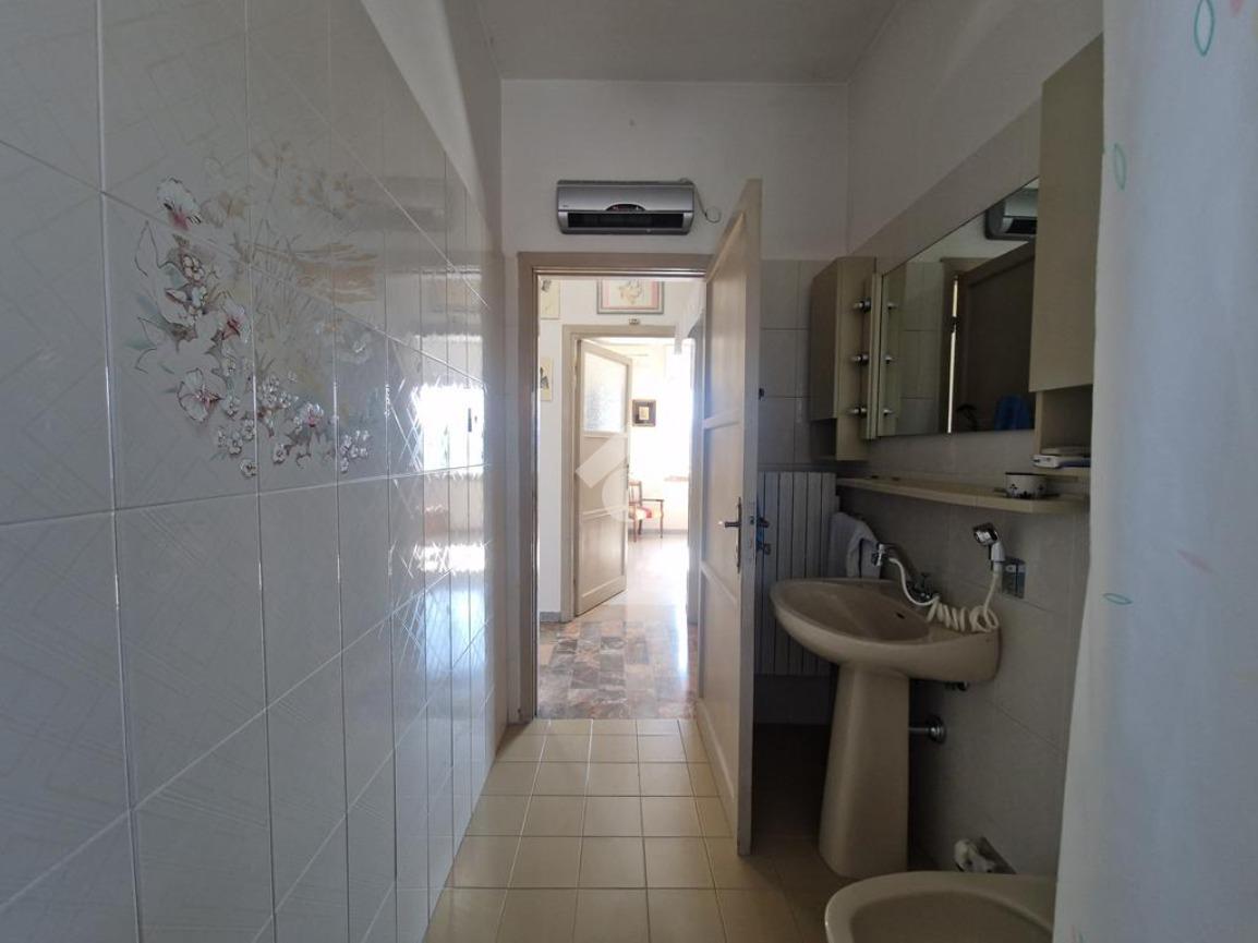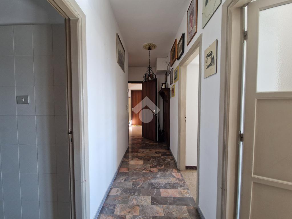 L’interno si apre su un ingresso - corridoio che conduce al luminoso soggiorno con accesso al balcone e al cucinotto, a tre camere da letto e ad un bagno con vasca.