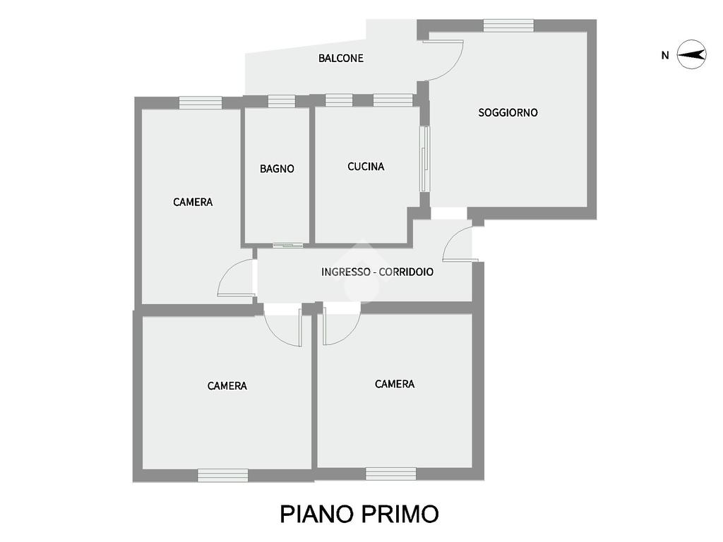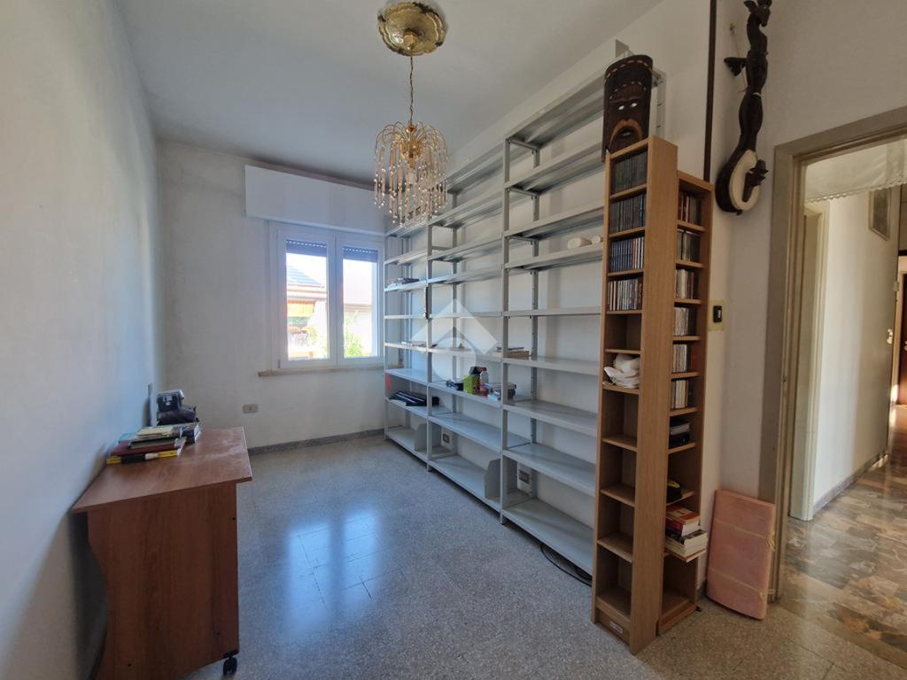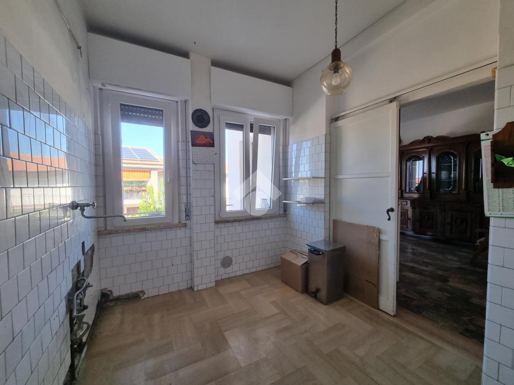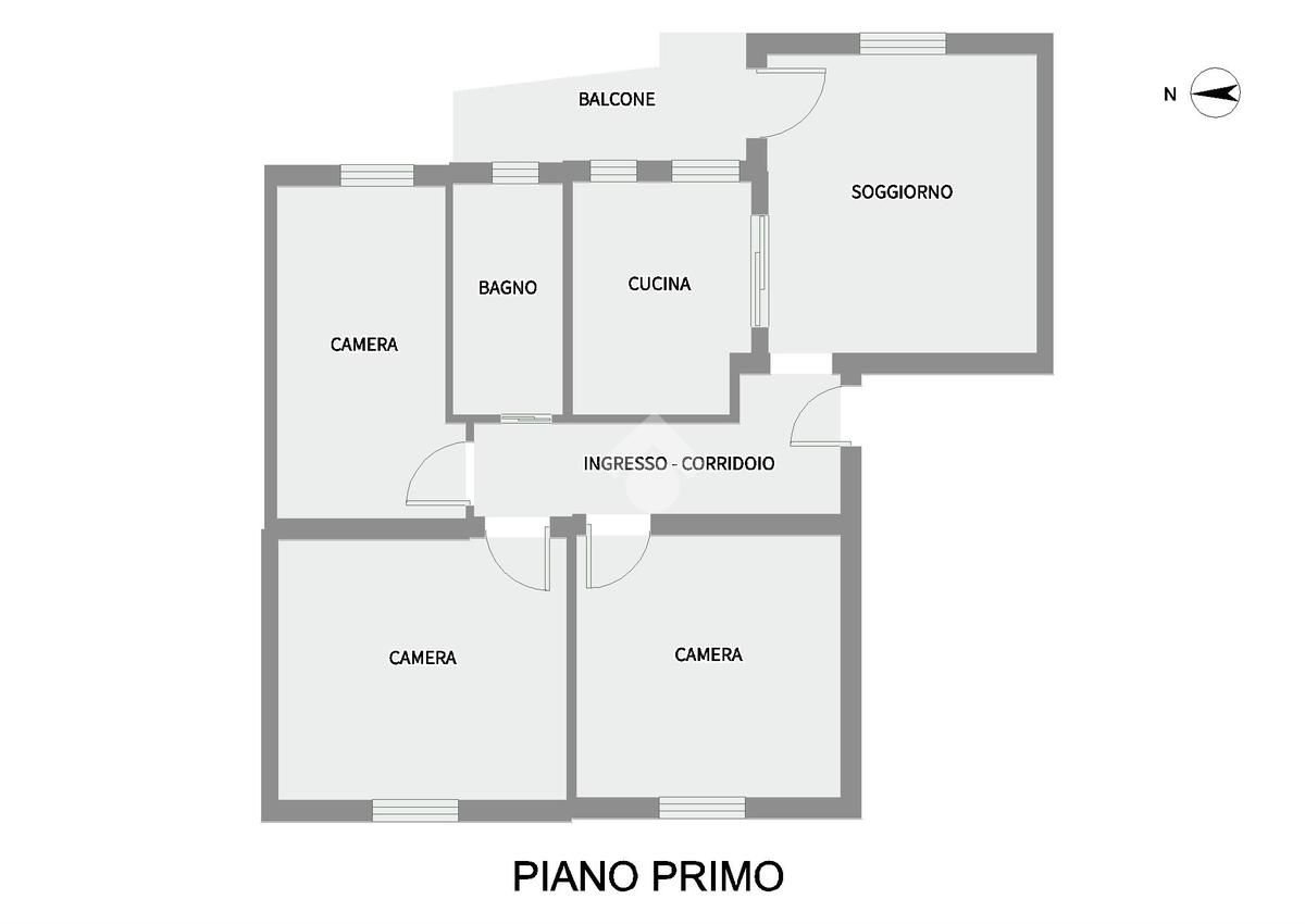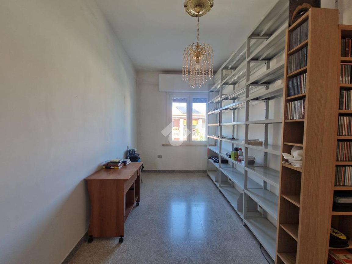 L’interno si apre su un ingresso - corridoio che conduce al luminoso soggiorno con accesso al balcone e al cucinotto, a tre camere da letto e ad un bagno con vasca.