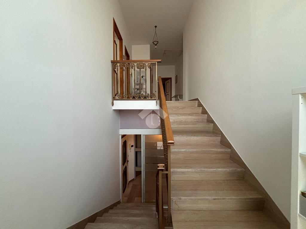 Al piano superiore, un corridoio conduce a tre comode camere da letto e ad un bagno con vasca, accompagnati da un secondo balcone perimetrale. L’immobile dispone inoltre di una soffitta all’ultimo piano, offrendo spazio extra per ripostiglio o altri utilizzi.