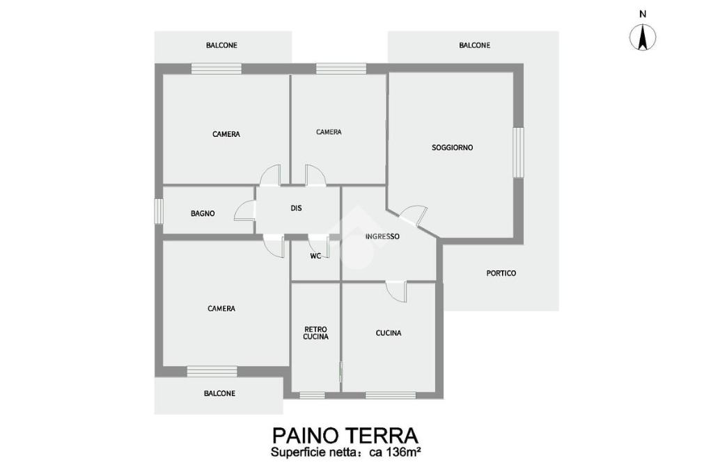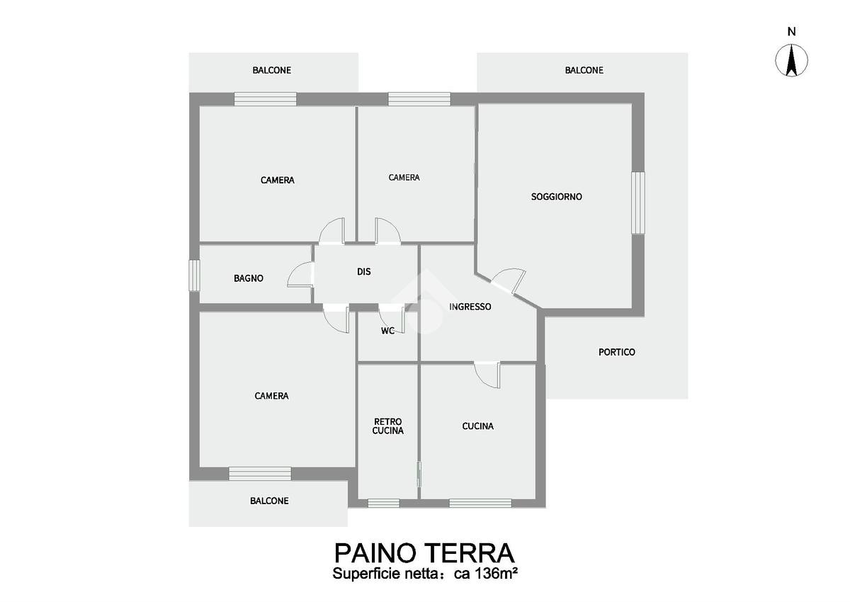 Un porticato permette l'ingresso all'abitazione che si apre su una confortevole zona giorno composta da un soggiorno, una cucina con camino e retrocucina e bagno di servizio. La zona notte ospita tre ampie camere da letto, un secondo bagno dotato di vasca e due balconi panoramici che offrono una splendida vista.